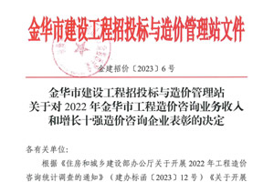 祝贺!我司荣获2022年金华市工程造价咨询业务收入十强企业