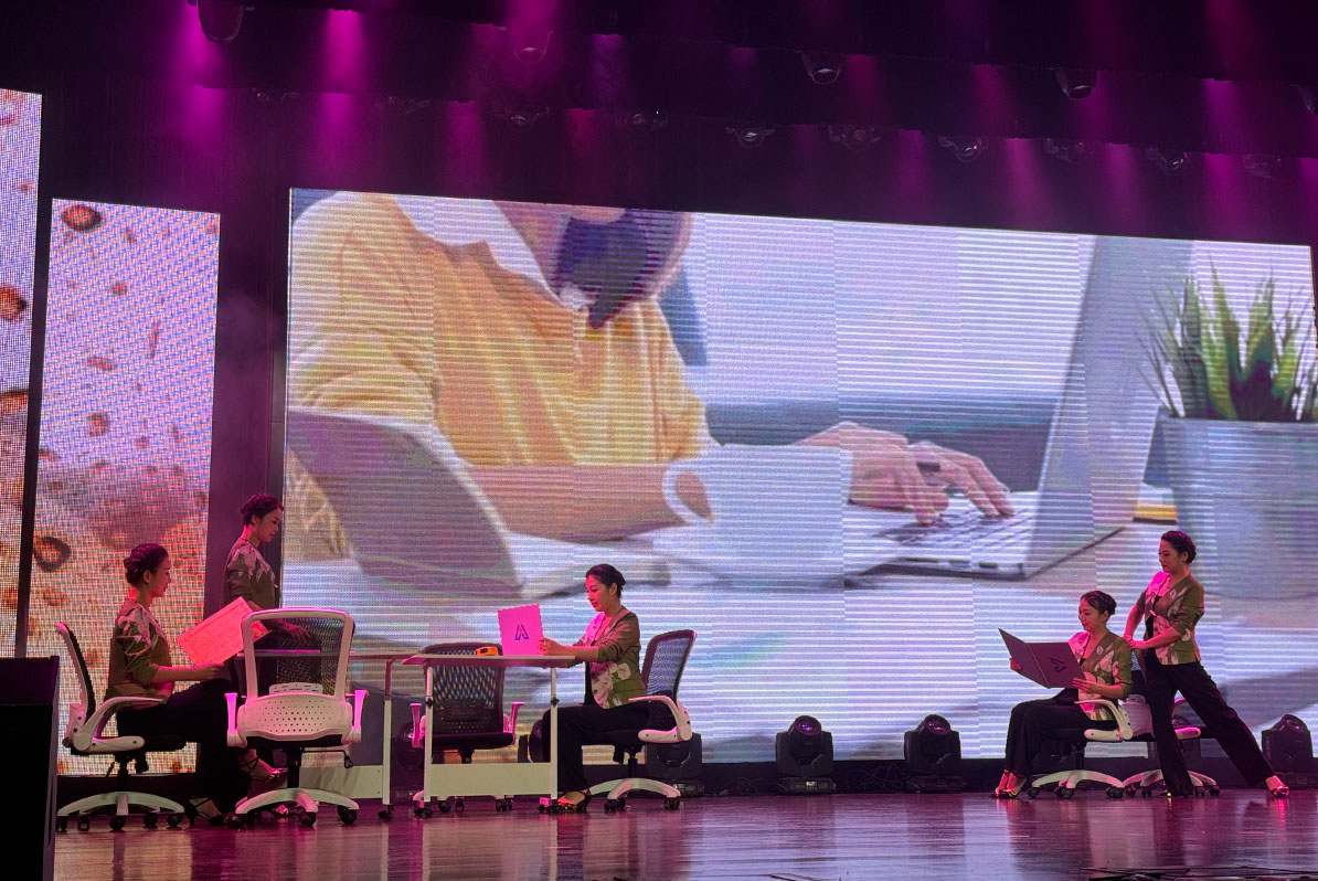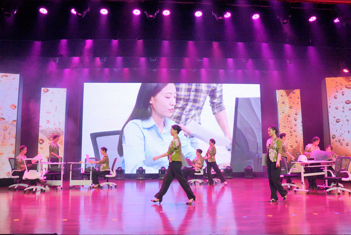 在庆典晚会上,我公司选送的情景舞蹈《造价圈的她们》完美演绎了造价女性的柔美温婉和坚韧独立,她们在生活中,承担起家庭的责任,在工作中,拿起鼠标,建模算量、成本分析,戴上安全帽,下工地,现场检查、核实材料,用她们的热情坚韧和耐心细腻,为建设工程保驾护航。她们犹如一朵朵灼灼如火、瑰丽多彩的玫瑰花,在造价领域绚烂绽放。